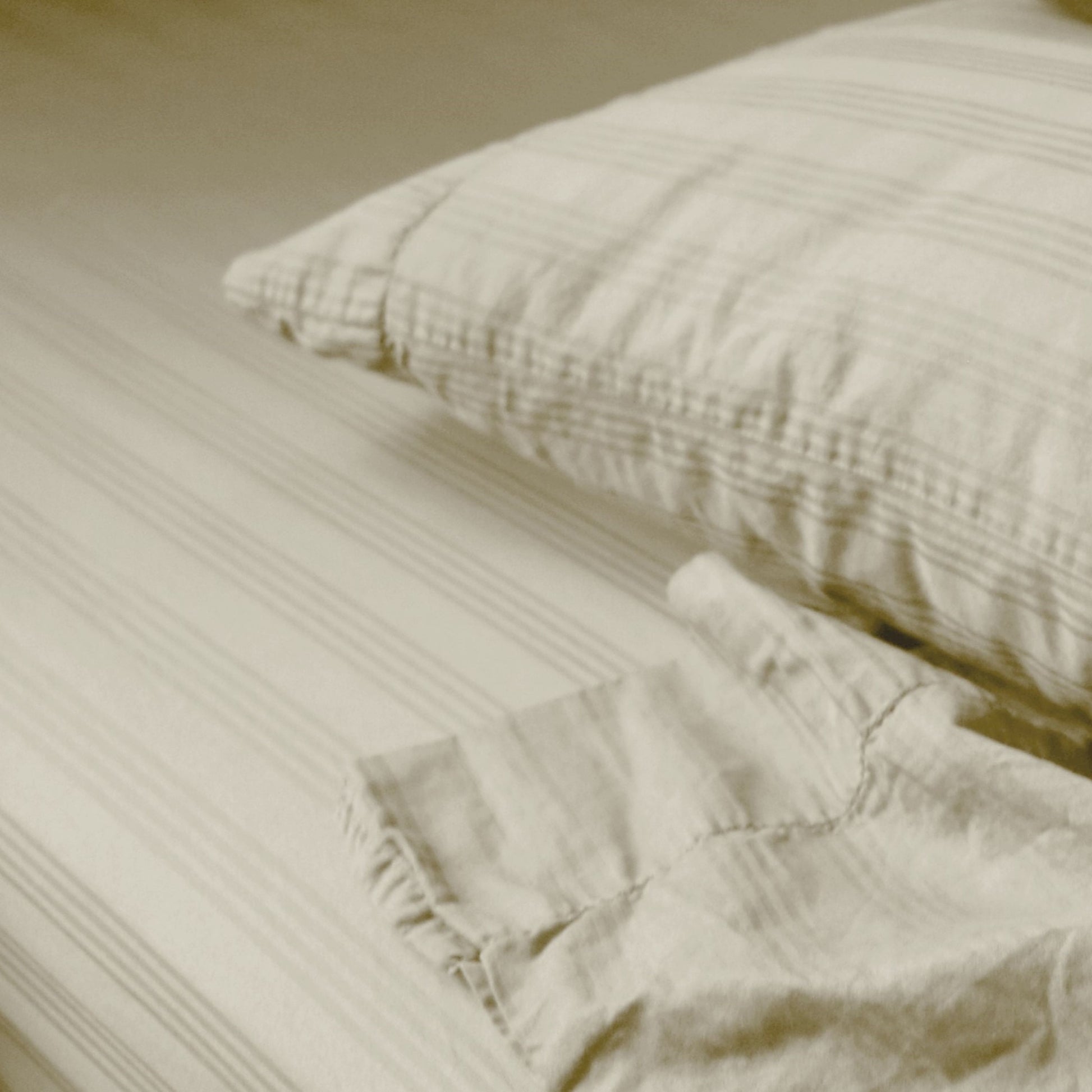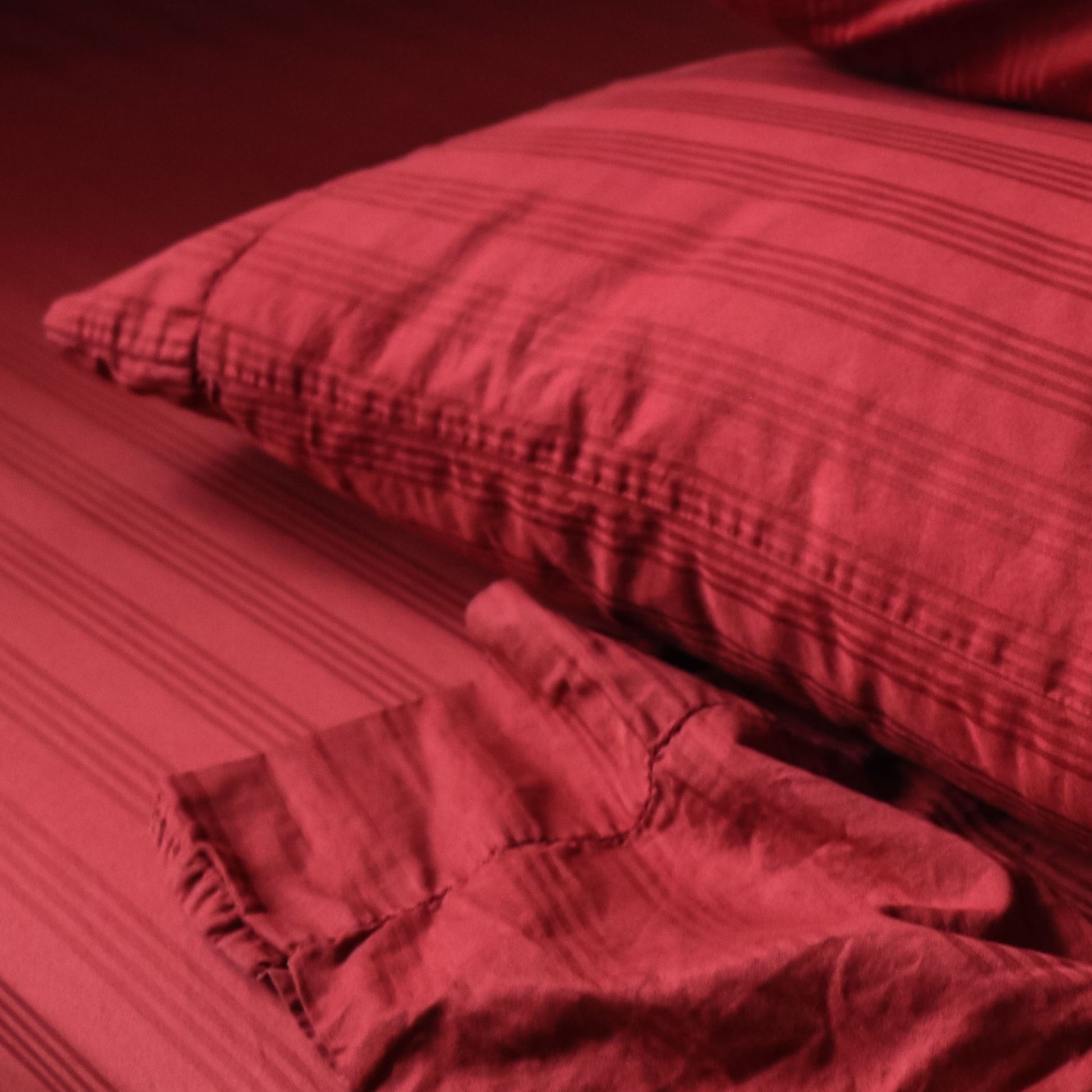 Complete with a fitted sheet, flat sheet, and two pillowcases, our set provides a perfect fit for your mattress and the striped pattern adds a touch of elegance to your bedroom decor.