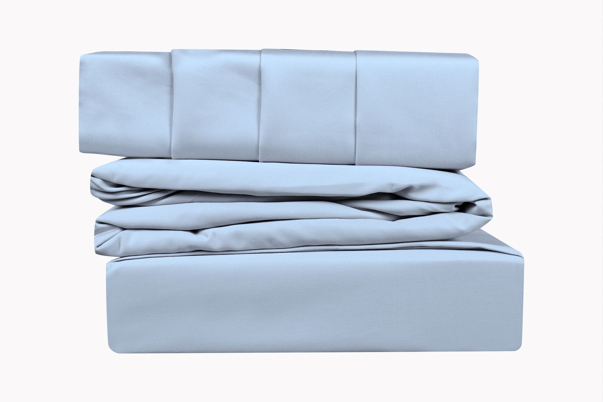 Dress your bed beautifully with our 800 TC Cotton-blend sets that come in a variety of colors and in King and Queen sizes. Each Set consists of a Flat Sheet, Fitted Sheet and four pillowcases. Featuring a combed sateen weave, these bedsheet sets do not wrinkle easily and hence does not require ironing giving your bed a smooth beautiful finish while coordinating well with your décor.